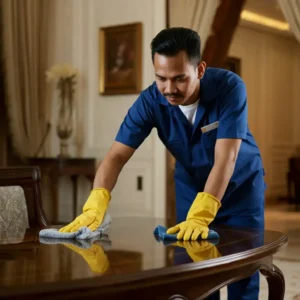 7. تنظيف جميع الأثاث والتركيبات باستخدام محلول التنظيف المناسب.